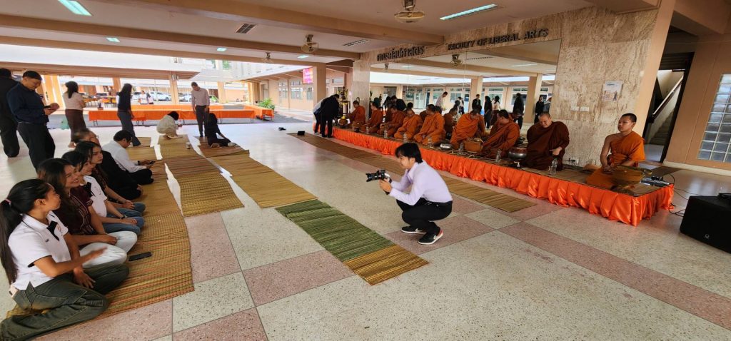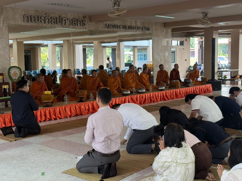 เมื่อวันที่ 25 ธันวาคม 2568 คณะศิลปศาสตร์ มหาวิทยาลัยกาฬสินธุ์ ได้จัดกิจกรรมทำบุญตักบาตรปีใหม่ ณ ลานอเนกประสงค์ อาคารฟ้าแดดสงยาง โดยมีคณาจารย์ บุคลากร และนักศึกษา เข้าร่วมกิจกรรมอย่างพร้อมเพรียง ท่ามกลางบรรยากาศที่อบอุ่น เรียบง่าย และเปี่ยมด้วยศรัทธา กิจกรรมในครั้งนี้จัดขึ้นเพื่อสืบสานวัฒนธรรมอันดีงามของไทย เสริมสิริมงคลรับปีใหม่ และสร้างความสามัคคีในครอบครัวศิลปศาสตร์ อีกหนึ่งช่วงเวลาแห่งความประทับใจที่สะท้อนถึงพลังความร่วมมือและความผูกพันในคณะ